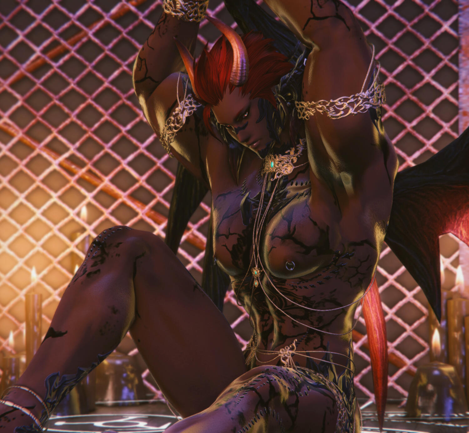 ❝A bonafide, tall 'Muscle Mommy', Farehi Zorzio is far from being a typical Roegadyn. From being salaciously saccharine to licentiously longing, Farehi is here to provide the best service with her toned, defined body and a precocious attitude to boot. A switch with big mommy(or daddy ;3) certification, Farehi is ever so pleased to serve any of her clients with utmost care and consideration.❞