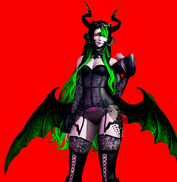 "Hellroom's angel baby. Local bimbo, thicc'ra Toyo somehow stumbled across this little piece of Hell, obviously a bit out of place. A bright, bubbly, bubblebutt dancer always seeming to ensnare people with her cuteness. Come say hi, she loves the attention."